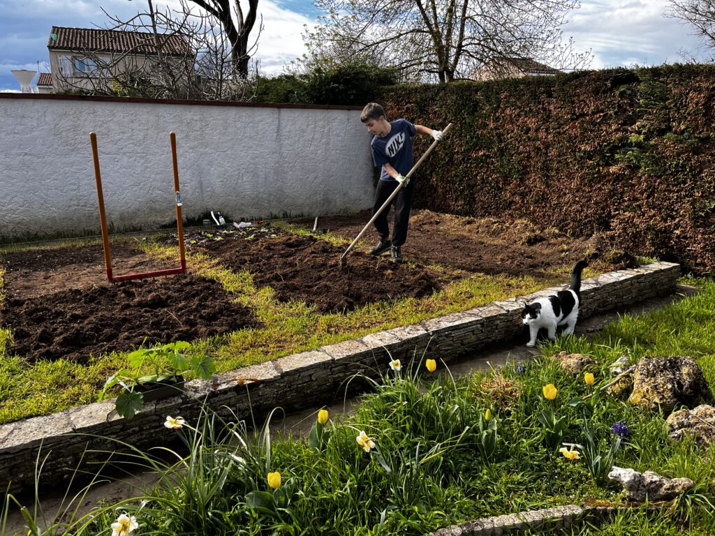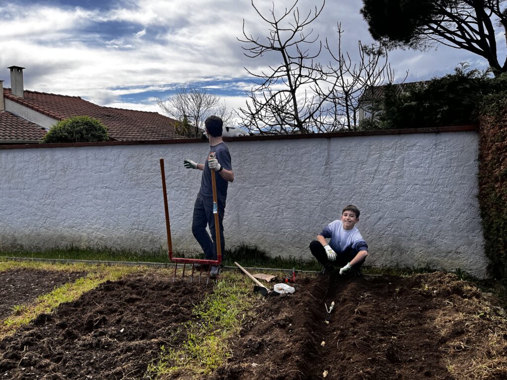 Ce weekend avec Eliott on s’est attelé à planter les premières…plantations ?