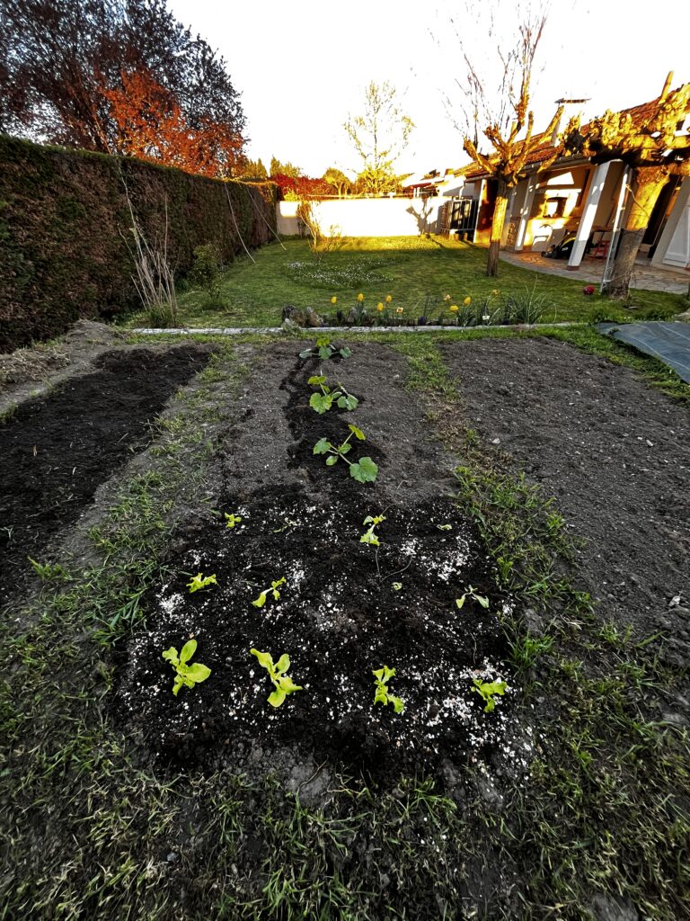 Puis ensuite on recouvre les pommes de terre puis on prépare pour mettre quelques salades et quelques courgettes… On verra si on a bien fait d’anticiper les saints de glace ou pas !!